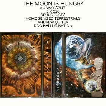 December 19, 2013:![]() Finally this is finished and available. 4 greatly dark weirdnesses on 4 ten-minute sides by Homogenized Terrestrials, Cruudeuces, Andrew Quitter, and Dog Hallucination. $8.50usa/can $18.50/world. Click the image to go to the page, listen, and buy. Interested parties & distributors please email intangiblecat AT G M AI L dot c om for trades & special rates. July 11, 2013:DEAL: $18.00 for both CAT-18 and CAT-19 postage paid ANYWHERE. Order at either release page.June 29, 2013:![]() CAT-19 Dog Hallucination Serving Two Masters 3" CDr / Download READY & DONE BABY! CAT-18 Gushing Cloud Beat Wings In Vain CD Digipak / Download READY & DONE, BABY! Order now Jan. 15, 2013: Postage prices changing! Unfortunately we're going to have to tack on a little bit extra to most of our prices to cover the rising postage costs and increases in frequency of mailings. There will now be TWO paypal buttons for many releases, covering IN USA/CANADA and EUROPE/WORLD. Please be careful to select the appropriate amount for shipping to your location. Be assured that we expidite our orders with care and haste, and will often include extras in appreciation of your order. Homogenized Terrestrials - The Contaminist CD eco-wallet now available. Recent releases: Distributed items: Check out Rebekah's Tape is Archaelogy video HERE to see some aspects of what you may have missed. Later this year: |