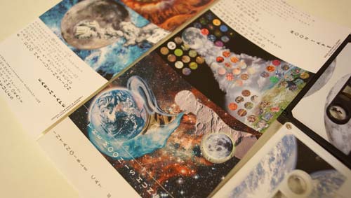 The artwork of the two J cards deals in weird metaphysical flights of fancy, played out in meticulous photoshop collaging imagined and executed by Dog Hallucination. Home printed in vivid colors, hand cut and assembled into simple side-by-side double cassette boxes. The tapes were dubbed at home in real time. Hear a sample down a bit lower on this page.