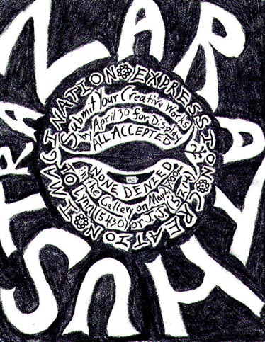 this is a flyer that JJ made to get people to submit artwork for the festival. the pisshorses played for a couple hours at this festival (click here for the whole zarathustra story.)