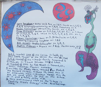 This here is the interior artwork for the physical cd of the "...is pregnant" thing. The illustrations were taken from the sketchbook of mr. Cory Bengtsen, and Mike R. wrote out all the information.